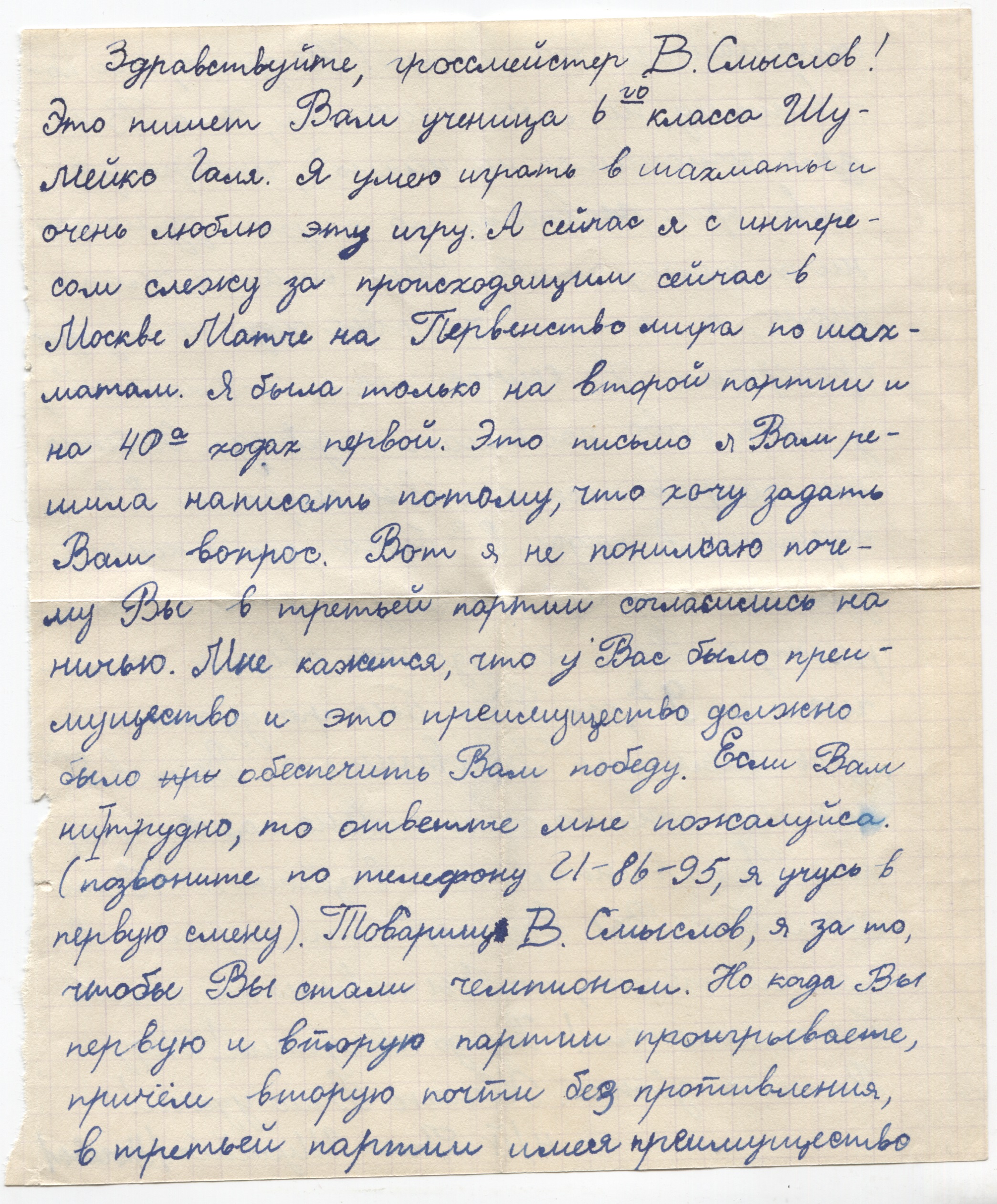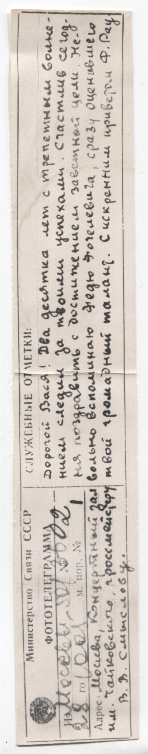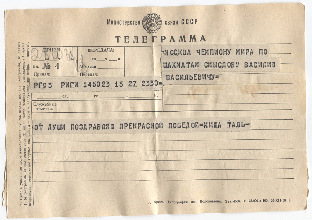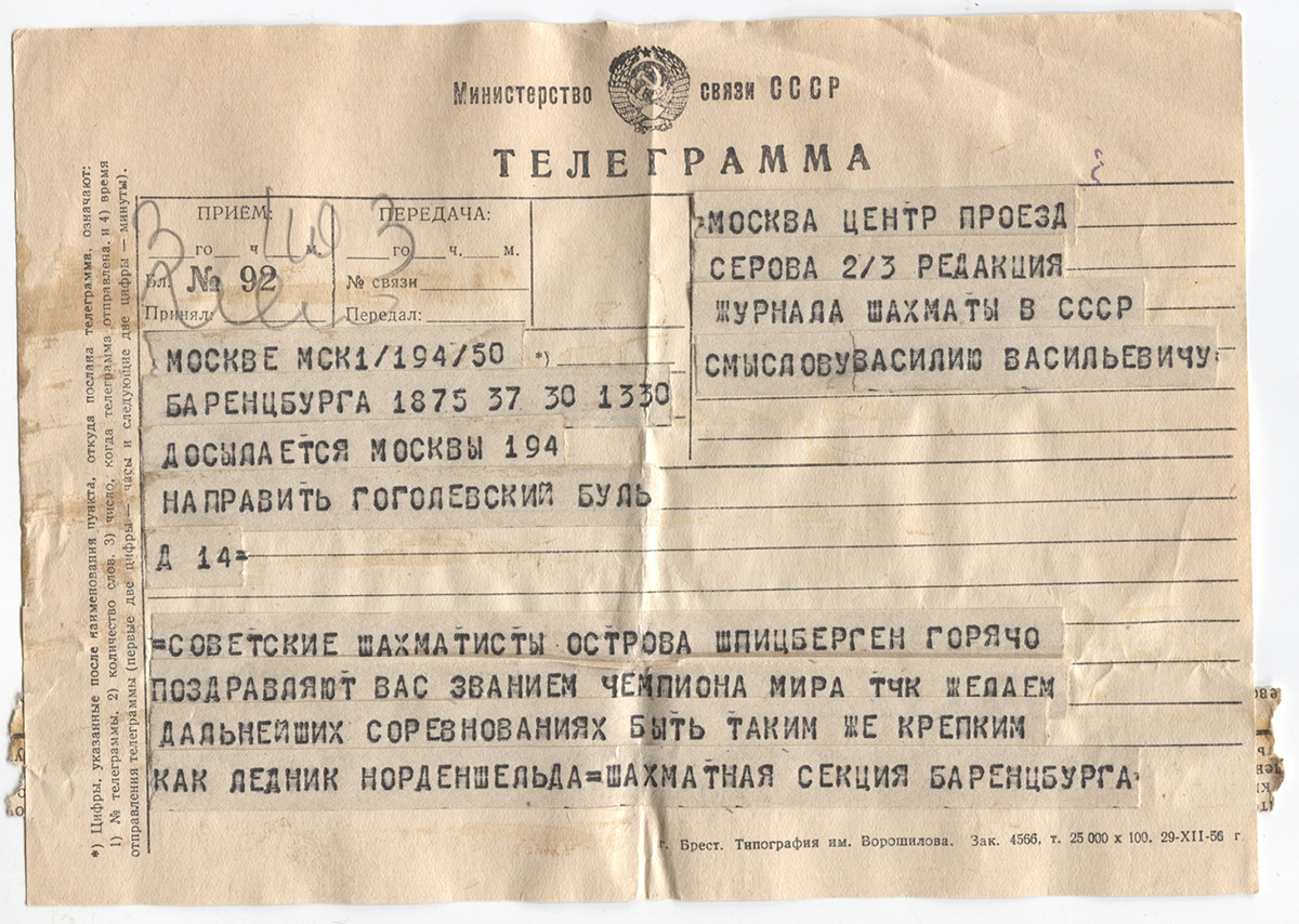 Telegram from FIDE President Rogard to ex world champion Botvinnik
