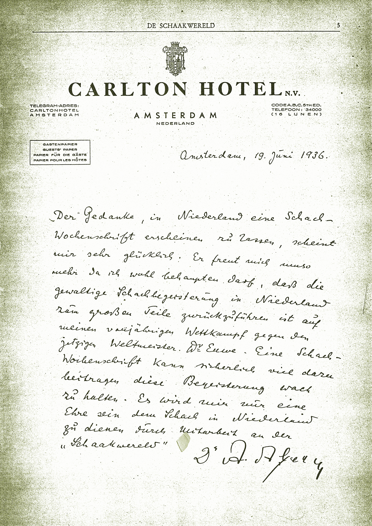 Letter from Efim Bogoljubow to Hermann Römmig, Treasurer of German Chess Union